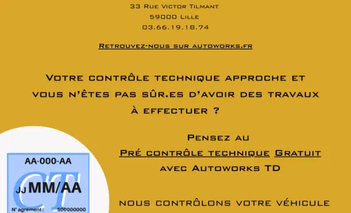 AUTOWORKS TD vous propose le pré-contrôle technique gratuit à Lille Sud.
